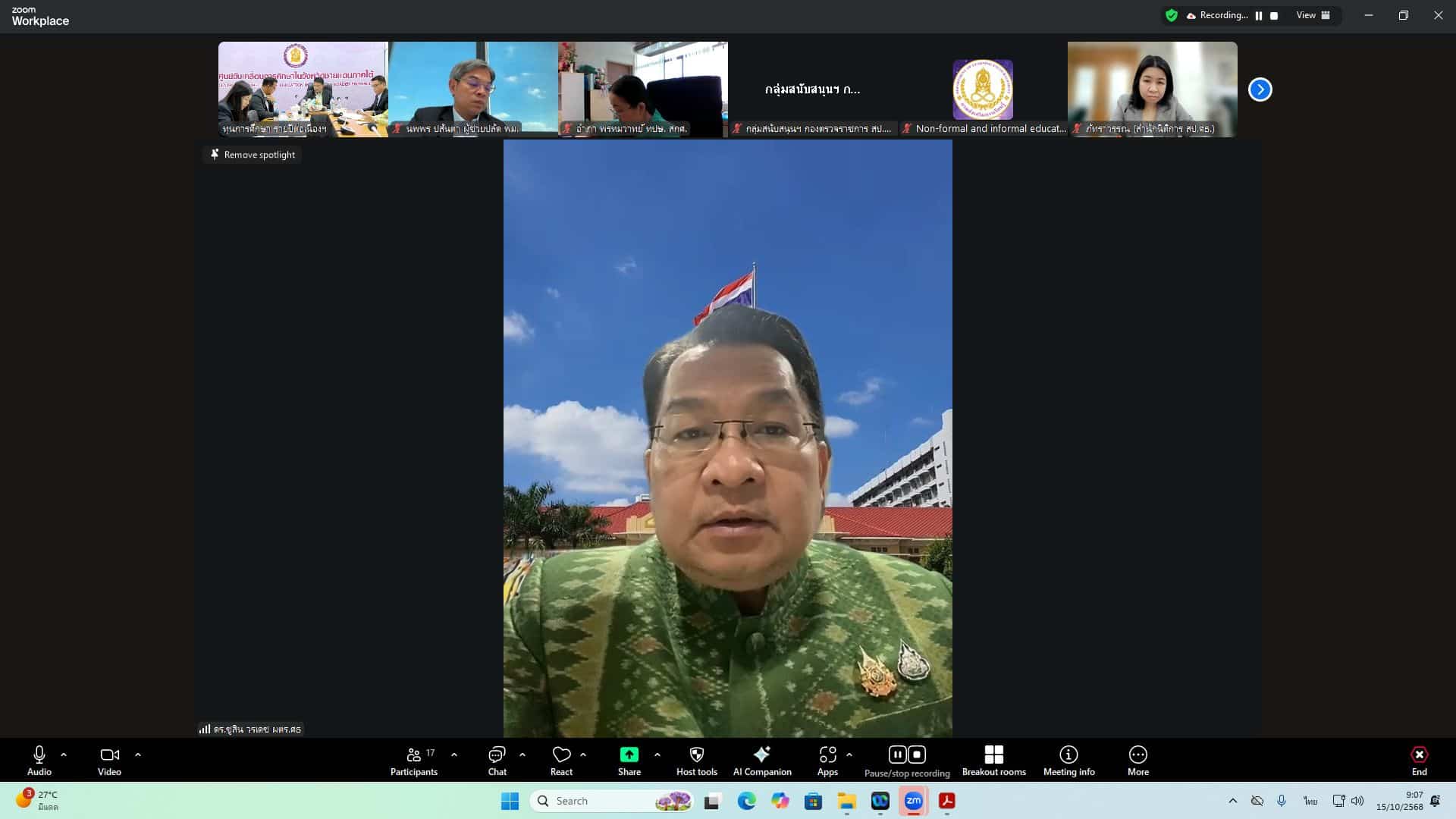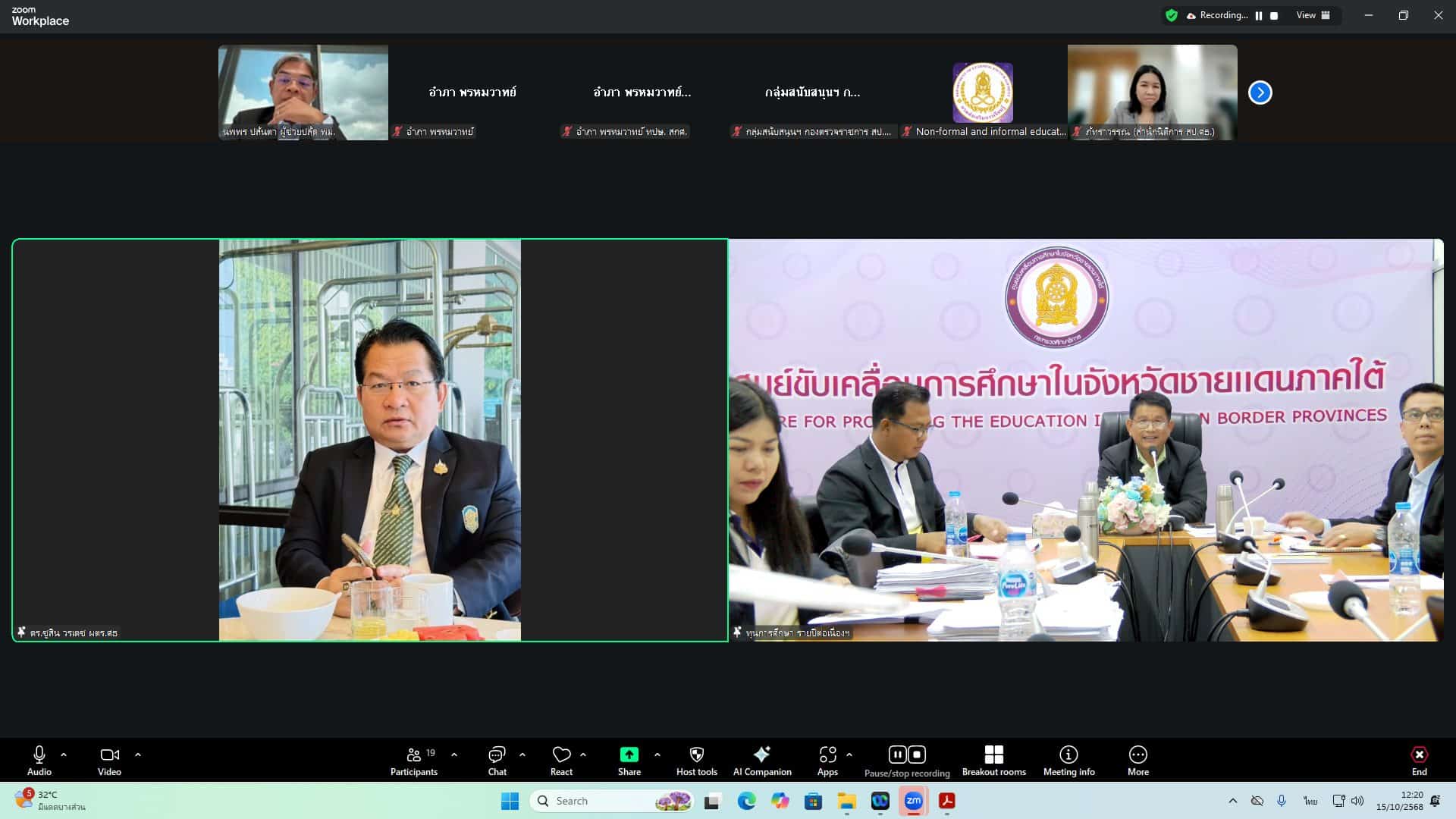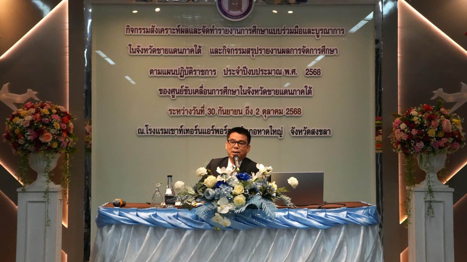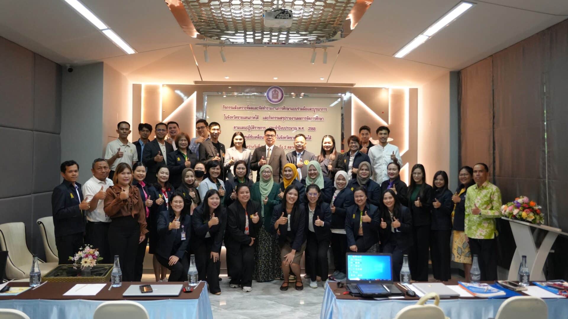 วันที่ 30 ตุลาคม 2568 นายนิกร เซ้งเถียร ผู้อำนวยการศูนย์ขับเคลื่อนการศึกษาในจังหวัดชายแดนภาคใต้ มอบหมายให้ นางสาวกฤษณา เพชรรักษ์ ผู้อำนวยการกลุ่มอำนวยการ ศค.จชต.เข้าร่วมการประชุมคณะกรมการจังหวัด หัวหน้าส่วนราชการ หัวหน้าหน่วยงานรัฐวิสาหกิจ นายอำเภอ ผู้บริหารสถานศึกษา ผู้บริหารองค์กรปกครองส่วนท้องถิ่น และผู้บริหารภาคเอกชน ครั้งที่ 10/2568 ประจำเดือนตุลาคม 2568 โดยมี นางพาตีเมาะ สะดียามู ผู้ว่าราชการจังหวัดปัตตานี เป็นประธานการประชุม พร้อมทั้ง นายสนั่น สนธิเมือง นายไชยพร นิยมแก้ว รองผู้ว่าราชการจังหวัดปัตตานี และหัวหน้าส่วนราชการ นายอำเภอทั้ง 12 อำเภอ และผู้แทนภาคส่วนต่าง ๆ เข้าร่วมประชุมอย่างพร้อมเพรียง ณ ห้องประชุมพญาตานี อาคาร 2 ชั้น 4 ศาลากลางจังหวัดปัตตานี