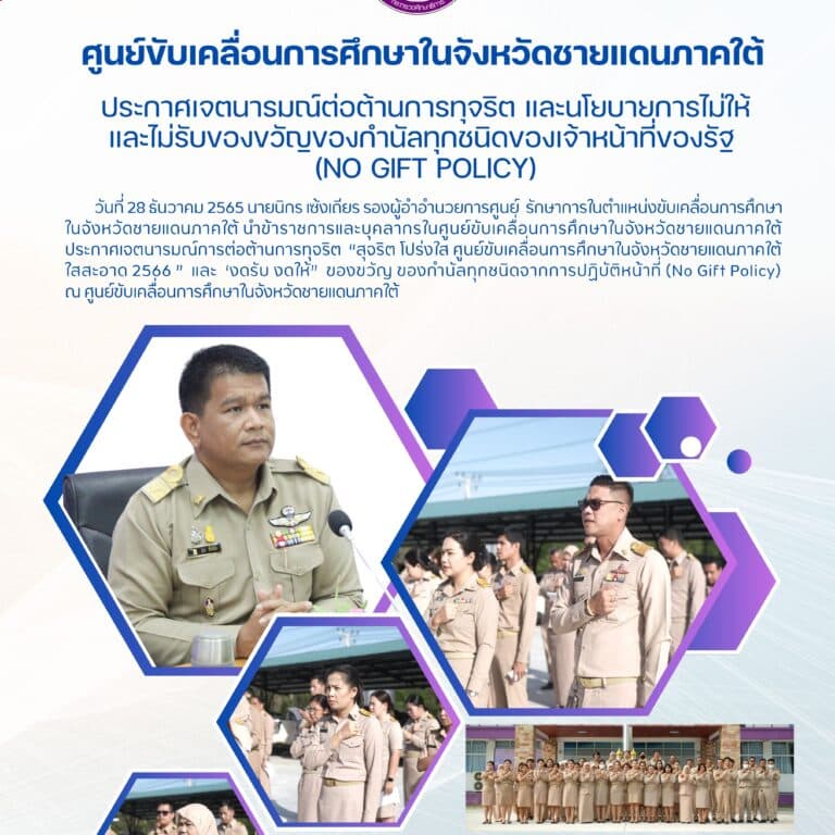 • ประกาศเจตนารมณ์และการสร้างวัฒนธรรมตามนโยบาย No Gift Policy จากการปฏิบัติหน้าที่